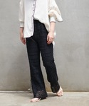 ◯袖口ロールアップシルケットロゴT ◯ 透かし編みレースパンツ ◯NEW細ヒモヌーディーサンダル 24.0~24.5㎝ ☞Lサイズ着用 tops さりげないロゴがワンポイントに! ロゴはとっても小さめなので主張が強すぎず、 子供っぽくなりません♪ 素材はシルクのような風合いが魅力の シルケット加工の生地を使用。 女性らしさも残しつつカジュアルすぎないTシャツは、大人レディスタイルにも 取り入れやすい一枚です♡ ややゆとりのある、肩下がりデザイン 腕を華奢に見せてくれ、 程よい肩下がりデザインです。 bottoms 透かし編みレースデザインのパンツは コーデ全体の生地感にメリハリを! 涼しげなシースルーデザインです♡ ◎ウエスト周りは全てゴム使用 ◎裏地もお肌に優しく柔らかいので、 履いたときに安心感を感じられ履き心地抜群です!♪ また、レースデザインなのに とっても動きやすく、しゃがみやすいので 忙しい方にもお洒落着として履いて頂けます。◎