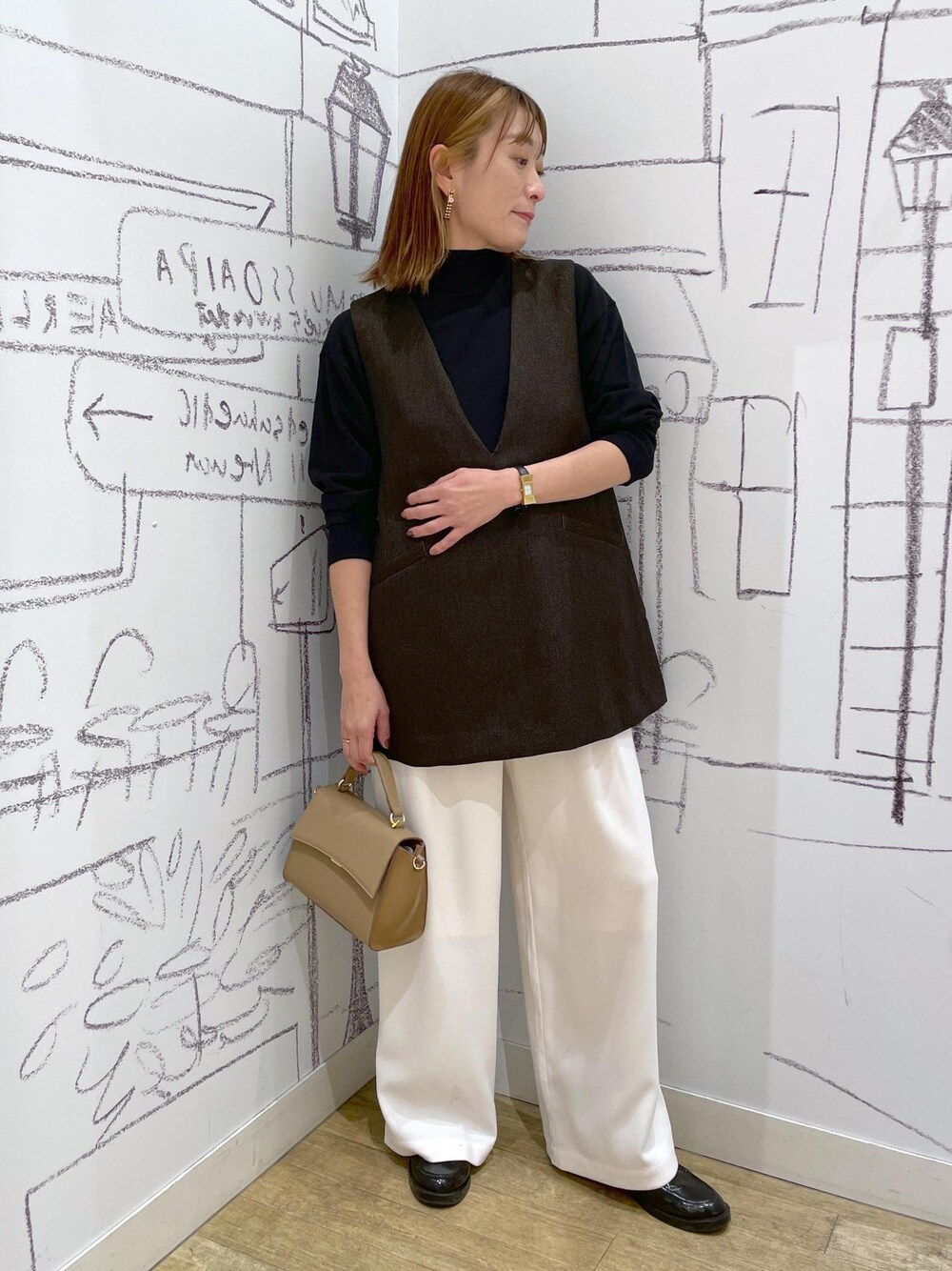 ベストはホントに着回し抜群です! 何通りもコーディネートができるので楽しいですよ! 白のボトムスは今年すごく私がハマってます! 汚れ…気にせず!笑 ボトムスの詳細はコチラです! GDS73000 38サイズです。ウエストゴムです。 丈感欲しかったので38にしました。 36は若干短くなります。