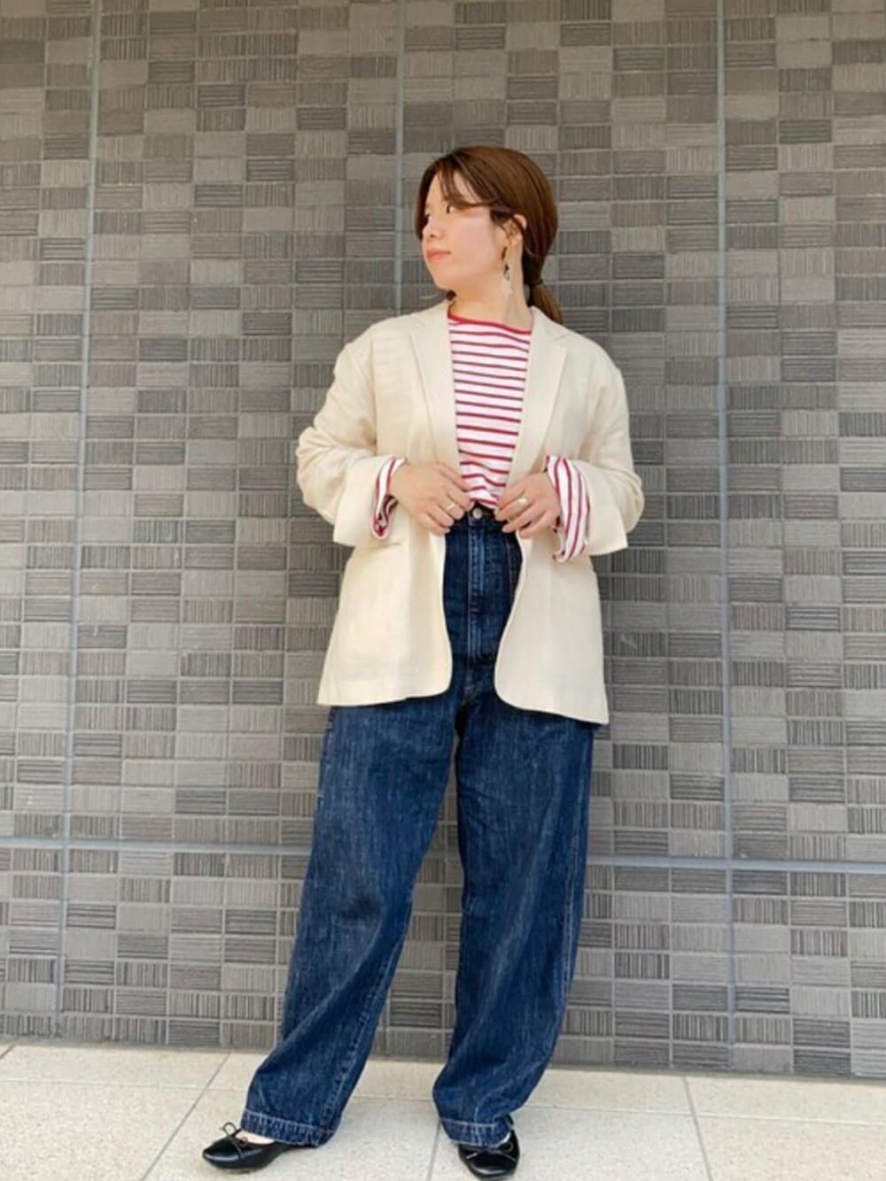 大好きなボーダー×ジャケットの組み合わせです🧥 ボーダーのカットソーは 形が可愛すぎて2色買ってしまいました!笑 インナーとして着てもとっても可愛くて、 使えるのでオススメです🌼