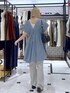 ご覧いただきありがとうございます💫 【 155cm / 骨格ストレート 】 大人気のシャーリングチュニック🫧 まだまだ暑さの残る8月も、涼しく風通し良く着用いただけます! 腰まで隠れる丈感と、スッキリ見えする首元が嬉しいポイント🌟