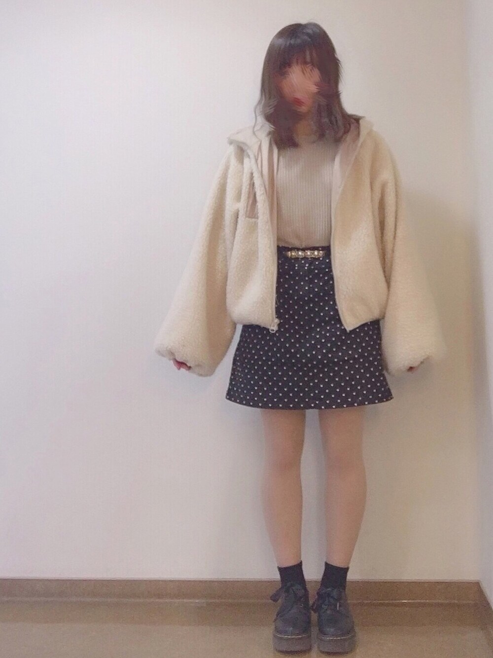 アプレジュールのモコモコ🤤❤️ かわいい〜 お日様出てるとあったかいけど、日陰は風が冷たくて寒かった😂 クリスマスからお正月にかけて食べて食べて食べまくったら4kg増えてた😨 寒いからパンツにしようとしたのにお肉が気になって履けなかったショック ダイエットしなきゃ🏃🏻♀️💨