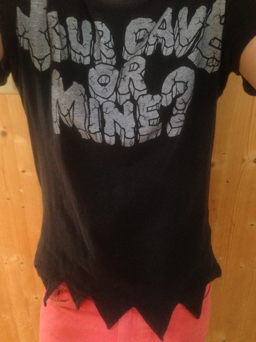 ギザギザのデザインに惹かれて購入しました‼ ギザギザの部分が目立つようにパンツは、オレンジ系の色でチョイス‼ JEREMY SCOTT最高です!!