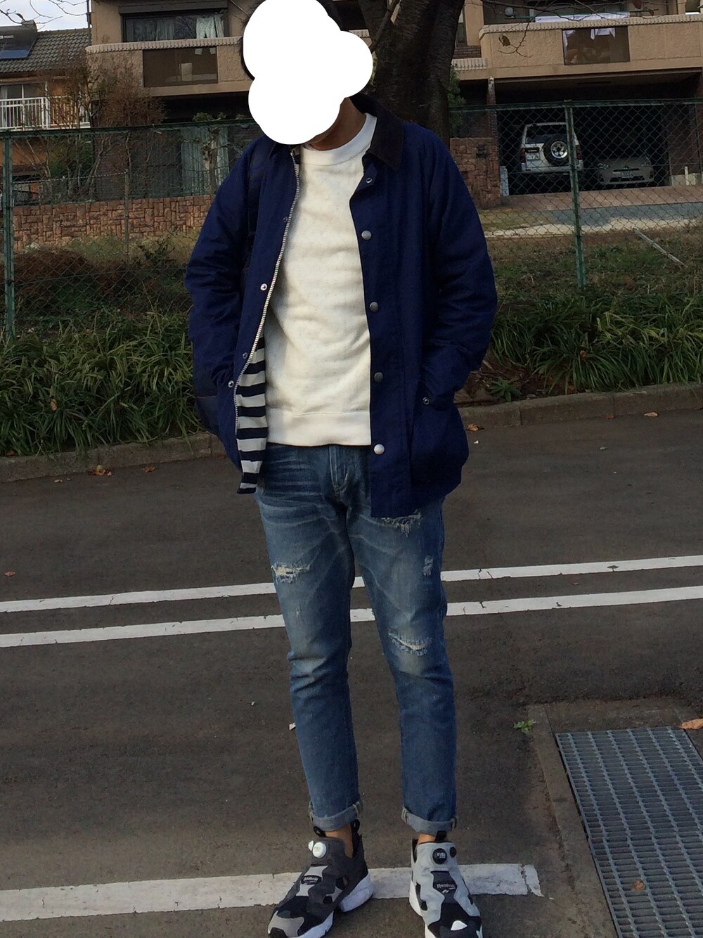 前々から欲しかった、ニットプリントスエット❗️ ほんと遠くから見るとニットにしか見えないです😁再入荷でついに買えました❗️ その時にすごく欲しかったリー別注のデニムを発見‼︎このダメージ感といいシルエットがすごくよくてついつい購入してしまいました😅