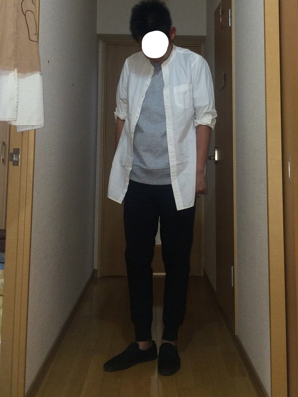 ナノユニバースのシャツはロング丈なので、最初はすごく抵抗がありましたが着てみるとサッと羽織れて使いやすいです。
