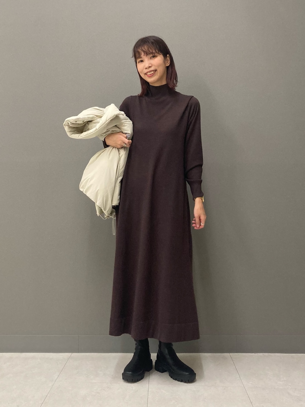 igarashi(あちゃん)(URBAN RESEARCH Store minamoa広島)のワンピース「FORK&SPOON ハイネックフレアニットワンピース」を使ったコーディネート