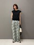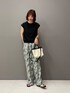 EKALのプリントイージーパンツをメインに、ジメッとする季節にも快適に過ごせるコーディネート☆ 夏だからこそ挑戦しやすい柄物! 光沢感もあるのでカジュアルになりすぎず、 シンプルなトップスと合わせると派手になりすぎず自然に取り入れて頂けますよ(^^) ※EKALの商品は一部店舗/オンラインのみとなっております。
