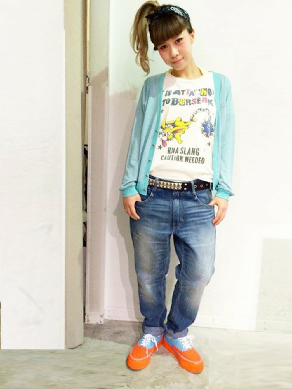 春らしいPOPなカラーの中に、ゆるいシルエットのデニムを合わせてRNAらしいストリート感も出しました !