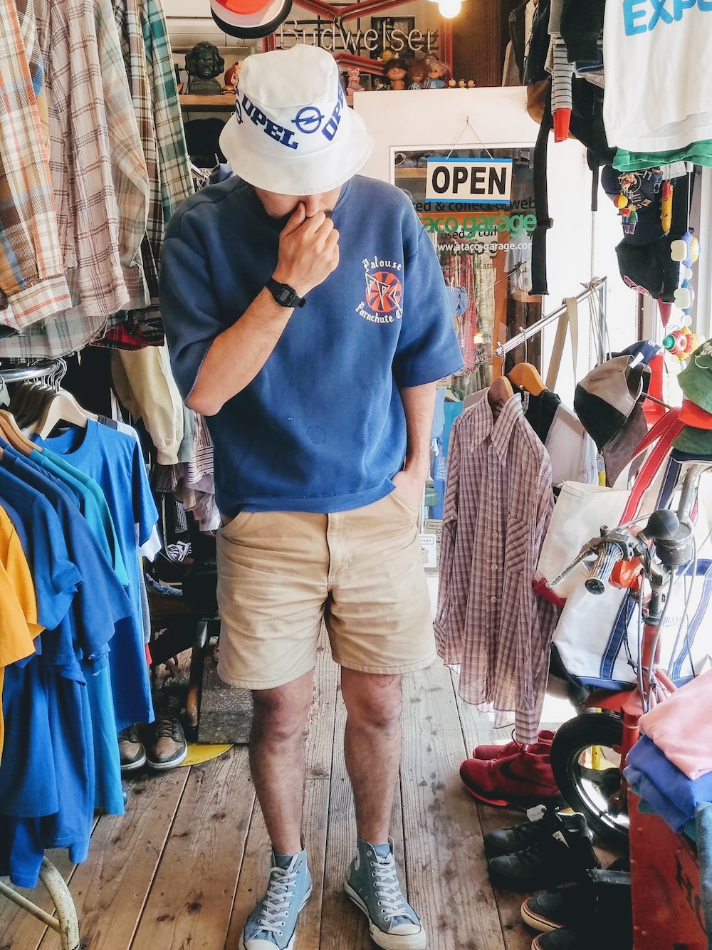 今日は60年代RUSSELLのカットオフスウェットシャツのご紹介。 カラーはビンテージ古着特有の風合い良く色落ちしたネイビー。 ボディは肉厚ボディです。 胸とバックにはペンキプリント。デザイン、バランスともにgoodです。 袖が5部くらいでカットオフされています。 リペア跡がありますが、それも含めて風合い良く仕上がった一枚です。 メンズXLサイズ、ややゆったりとしたシルエットです。 詳しくはWEBショップにてご確認ください。 USA製 60S 古着 RUSSELL ラッセル 前Vガゼット 両面プリント カットオフ スウェット ネイビー トレーナー メンズXL PALOUSE PARACHUTE CLUB https://www.ataco-garage.com/products/detail.php?product_id=3354