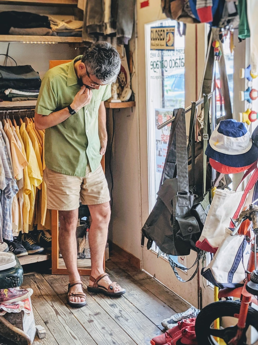 ataco garageのサンダル「TEVA テバ レザーサンダル ブラウン スポーツ WATERPROOF 27cm アウトドア 古着」を使ったコーディネート