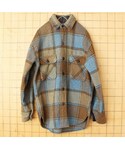 ataco garageのシャツ/ブラウス「60s USA Penney's TOWNCRAFT ウール チェック CPO シャツ ジャケット メンズM 長袖 ブルー アウトドア アメリカ古着」を使ったコーディネート