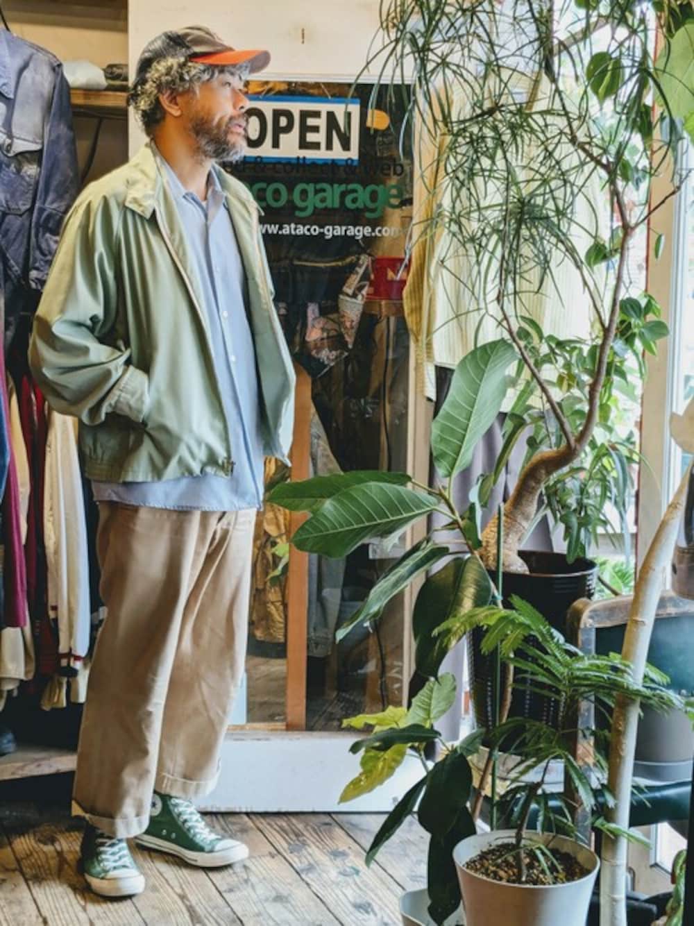 ataco garageのブルゾン「70s 80s USA Sears スイングトップ ドリズラージャケット メンズXL相当 ライトグリーン アメリカ古着」を使ったコーディネート