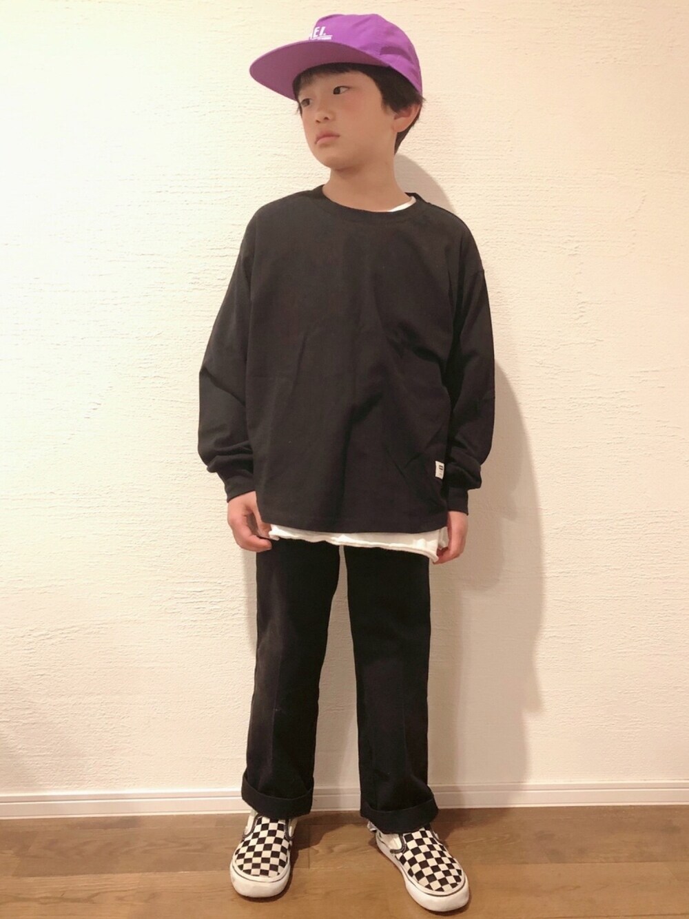 またまたブラックコーデ⚫笑 紫のキャップかわいい🟣 🟣🟠🟢持ってます🧢 ネオンカラー好き😘