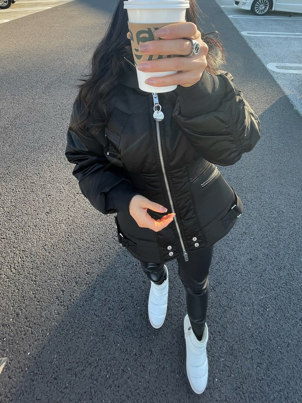 DIESELのアウターメイン オールブラック好き♟ けど、ホワイトのUGGブーツでアクセント👻RIDGEMINIめちゃくちゃあったかい。-32℃まで耐えれるからねん