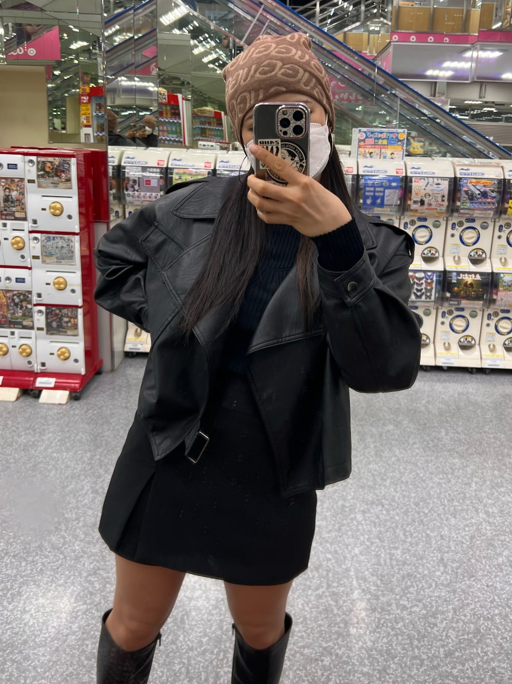 annmancheeesのライダースジャケット「【入荷禁止】Fake leather riders jacket / フェイクレザーライダースジャケット」を使ったコーディネート