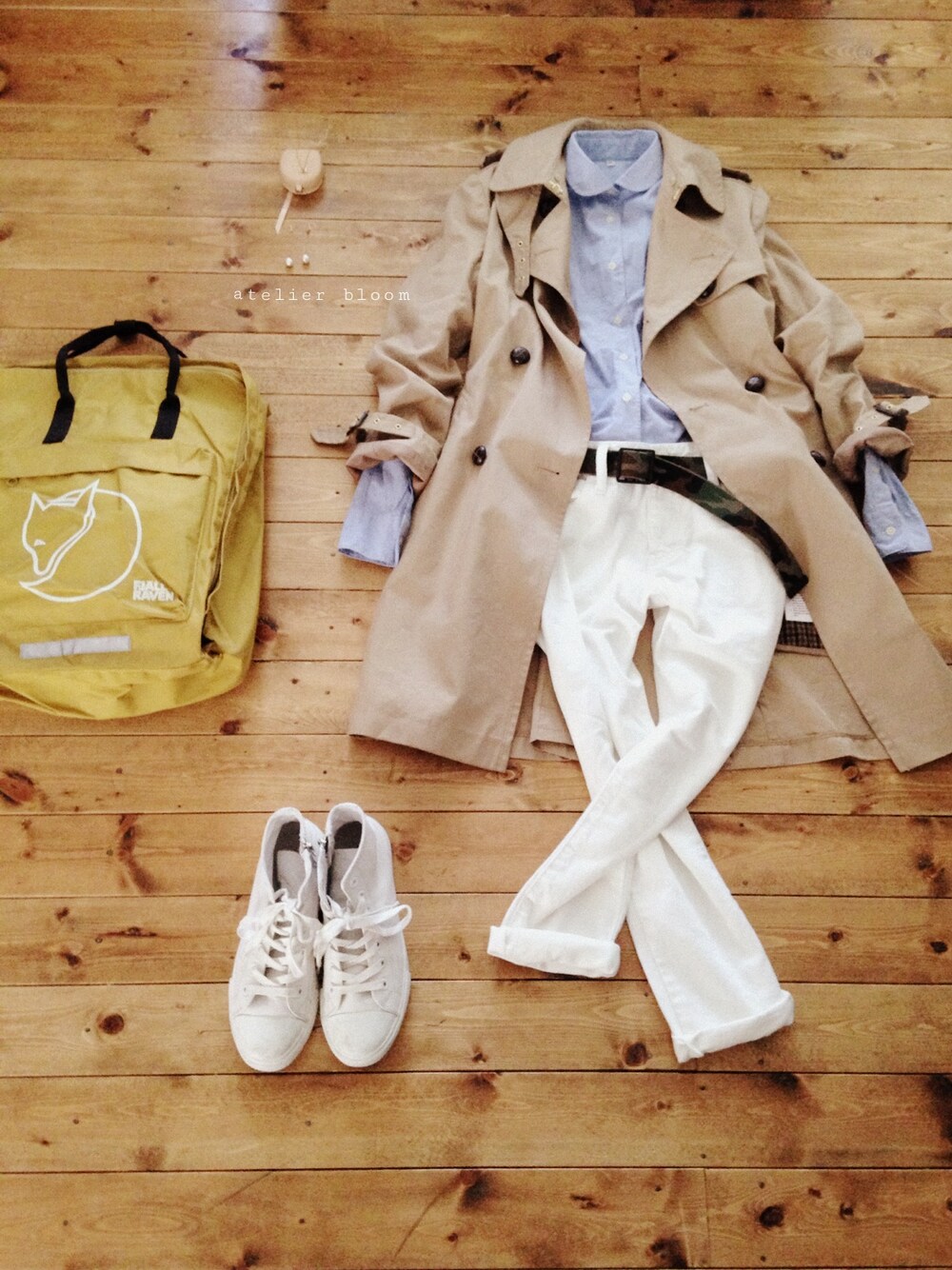 アクセサリー/atelier bloom 淡水パールちょうちょネックレス コットンパール10mmピアス アウター/nano・universe シャツ/無印良品 パンツ/journal standard bag/FJALL RAVEN Large kanken shose/nano・universe ベルト/BEAMS BOY カモフラージュ柄のナイロンベルト。 気にいっています。 たくさん使おう☺︎