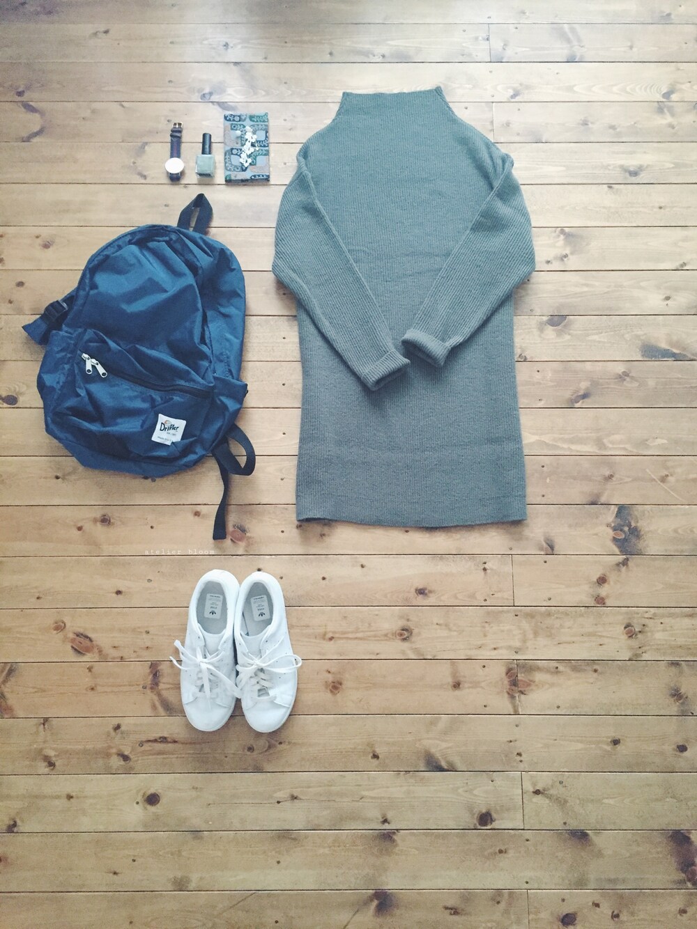 アクセサリー/atelier bloom 伊勢丹浦和店3階スライスオブライフにて展開中 10月21日〜伊勢丹立川店1階にて販売開始 DanielWellington www.danielwellington.com/jp 15%割引クーポン 「 bloom12 」 (有効期限 2015年11月30日) instagram @atelierbloom 詳細を記載しています。 ボトルネックニットのチュニックを ワンピースに。 リュック、スニーカー、 旅支度。