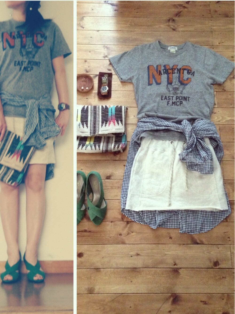 アクセサリー/atelier bloom コットンパールピアス(ZOZO MARKET) 淡水パールちょうちょネックレス(ZOZO MARKET) ロゴT/BEAMS BOY スカート/Bianca's closet (cher) シャツ/UNIQLO bag/nano・universe shoes/shoe bar deesse 日焼け対策の長袖シャツが必要な季節になりました。。。