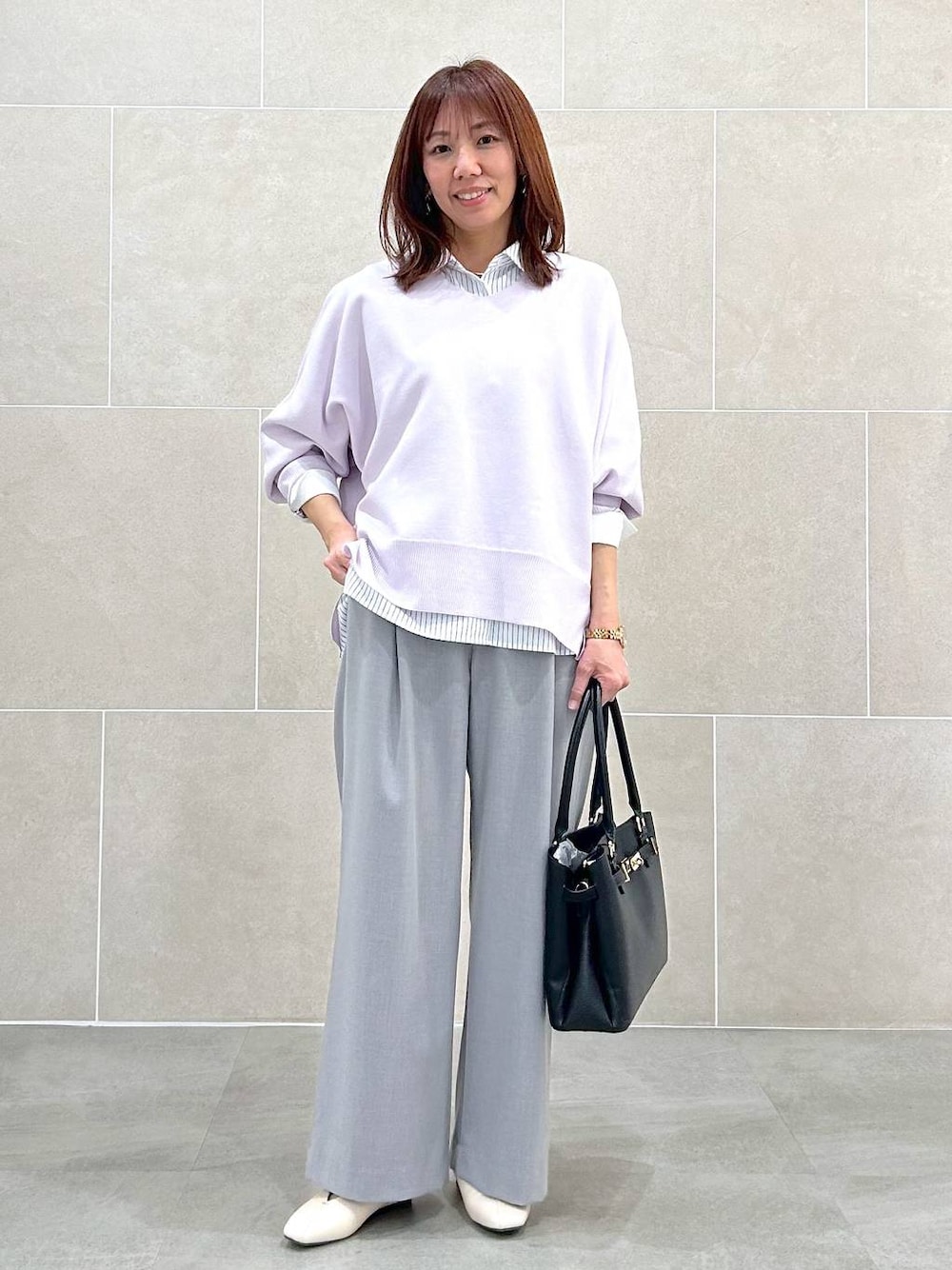 ご覧いただきありがとうございます♡ \\サイズ感など// 身長:162cm 足のサイズ:23.5cm トップス、ボトムス : Mサイズ イエベ春 🌸 ▫️ニット もっちり軽い着心地 身幅ゆったりめ ▫️シャツ S size とろみがあり、インナーでも着やすい ドルマン袖でゆったりめ ▫️パンツ M size 程よくハリがあるので、お仕事着にも◎ ワイドすぎないのですっきりシルエット ……… すぐに見返せるので右下の♡押して お気に入りコーデ登録お願いします☺️ ⬇️詳細、ご購入は下から見れます。 Instagramもやってます♡ フォローもしていただけると嬉しいです⑅◡̈*