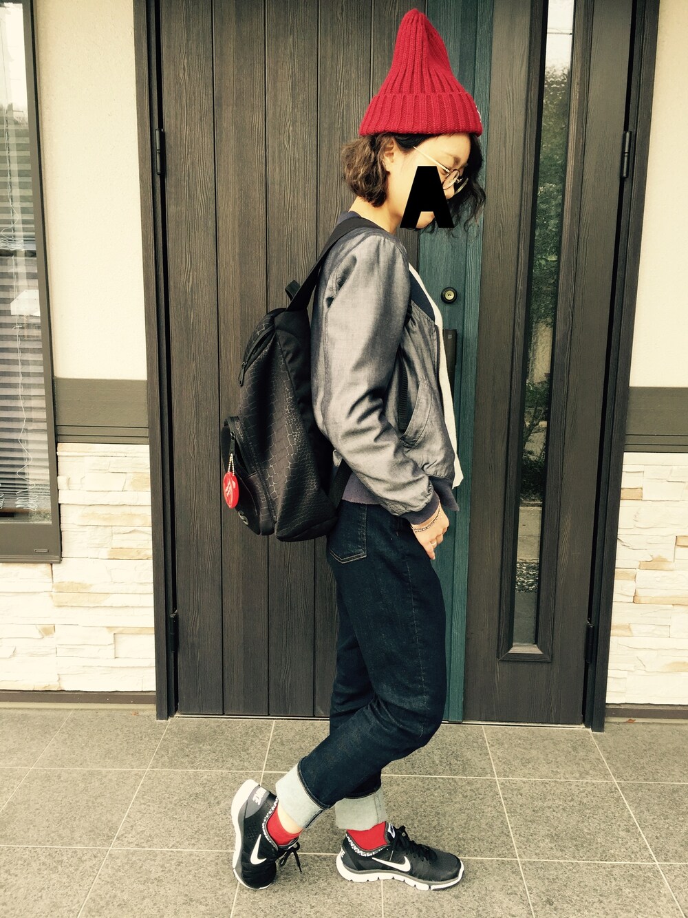 スケボーしてきた。差し色に赤。