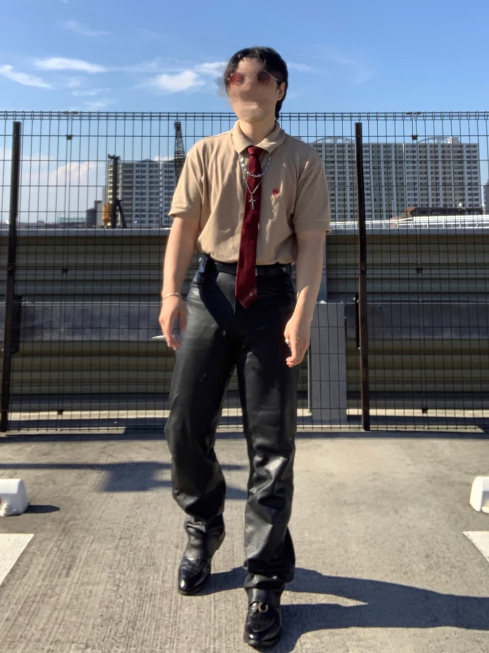 オールドGUCCIのポロシャツをメインに ヴィンテージのレザーパンツ合わせ無難な感じにしてみました! 夏でもバイク用のレザーパンツだとあまり蒸れなくていいですね。