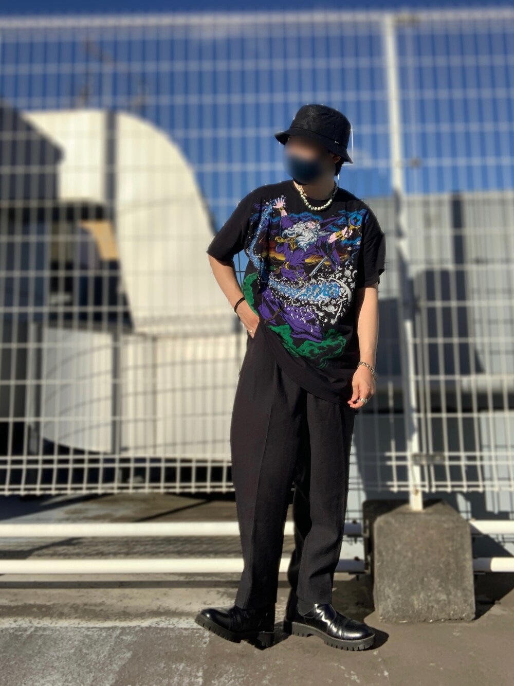 オールブラック 写真撮ってたら隣のマンション盗撮してるんじゃないか?と怒られた時のコーデ。