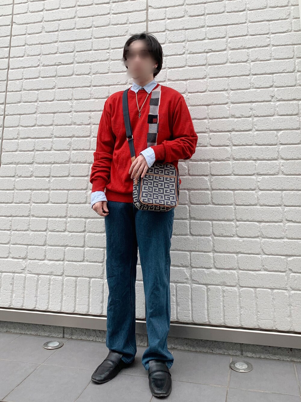 どうも、よく見に来てくれました。 今回は個人的にはシンプル目なコーデを組んでみました! ネックレスをシャツのボタンホールに通してつけてます。 何故普通につけないのかって? 長いシルバーのネックレスを持って無いからです。 バッグとニットはジバンシーで色合いを青系と赤系にそろえてみました!