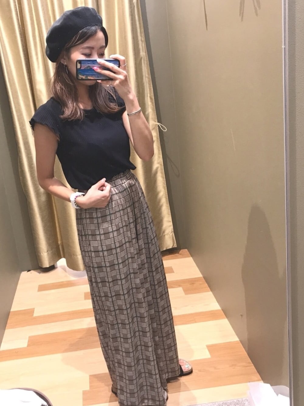 ご覧いただきありがとうございます👻 手持ちの服にグレンチェックのアイテムを プラスするだけで、秋の先取りコーデに! このパンツは薄手の素材なので 夏後半でも暑苦しくなく、 秋っぽさを取り入れられます😊