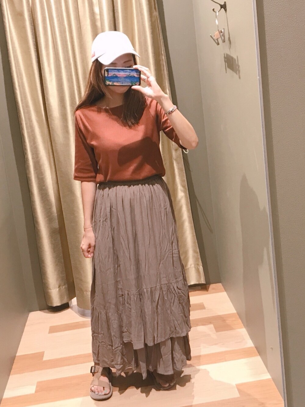 ご覧いただきありがとうございます👼🏽 新作で秋っぽコーデです。 ブラウンが気になります🍂 店内が少しずつ秋めいてきてます🍂 トップス990円+taxのプチプライス❣️ スカートは巻きスカートぽいデザインで かわいいです〜〜🧡