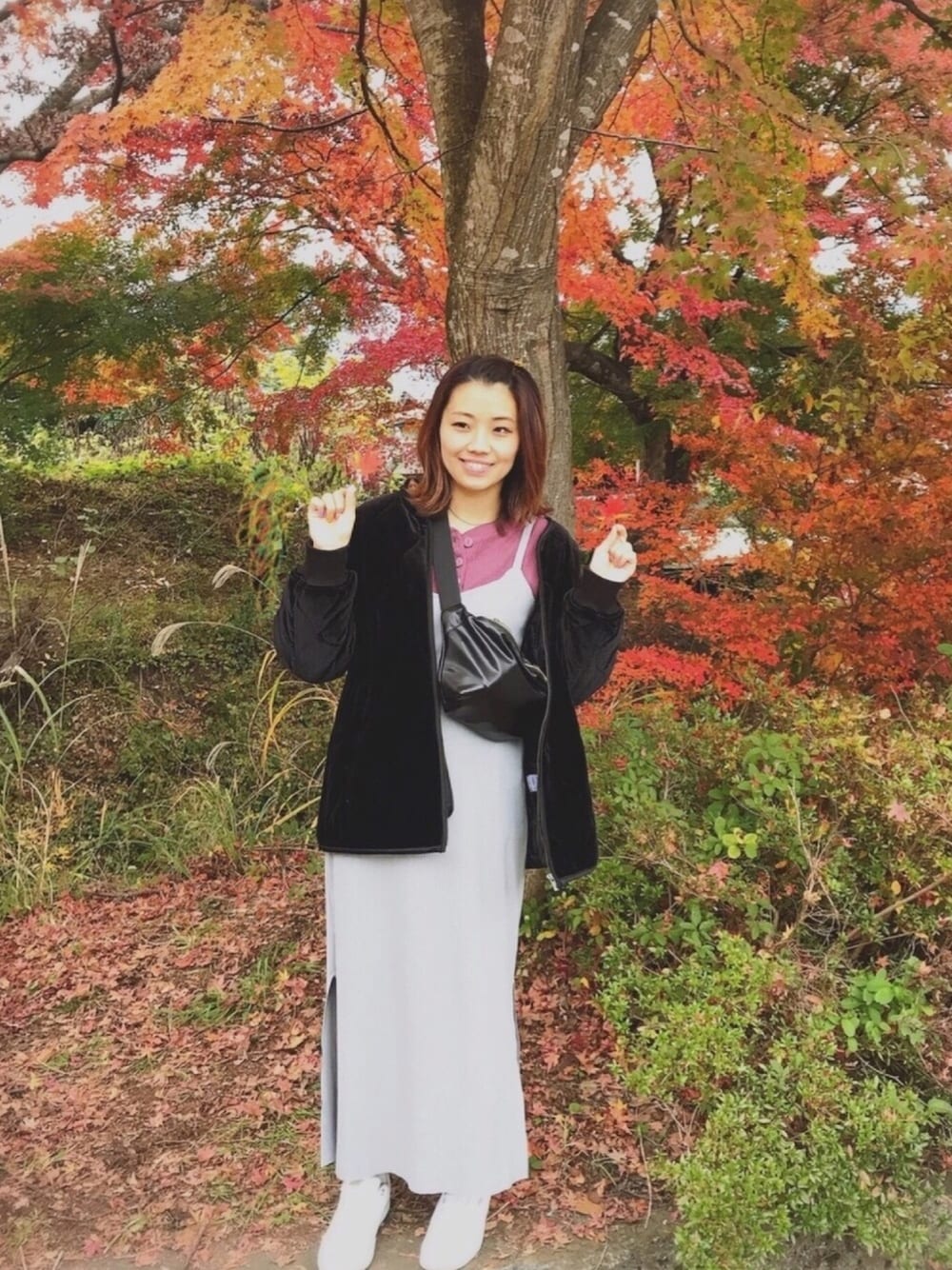 ご覧いただきありがとうございます🍁 中に着ているワッフルカットソーは 新作のアイテムです❣️ 色がかわいい😍 昨日はバスツアーで家族と 紅葉を見にいってきました🧡 今がちょうど見頃らしく とっても綺麗でした〜!! もみじ拾って持ってみたけど 見事に背景と同化。(笑)