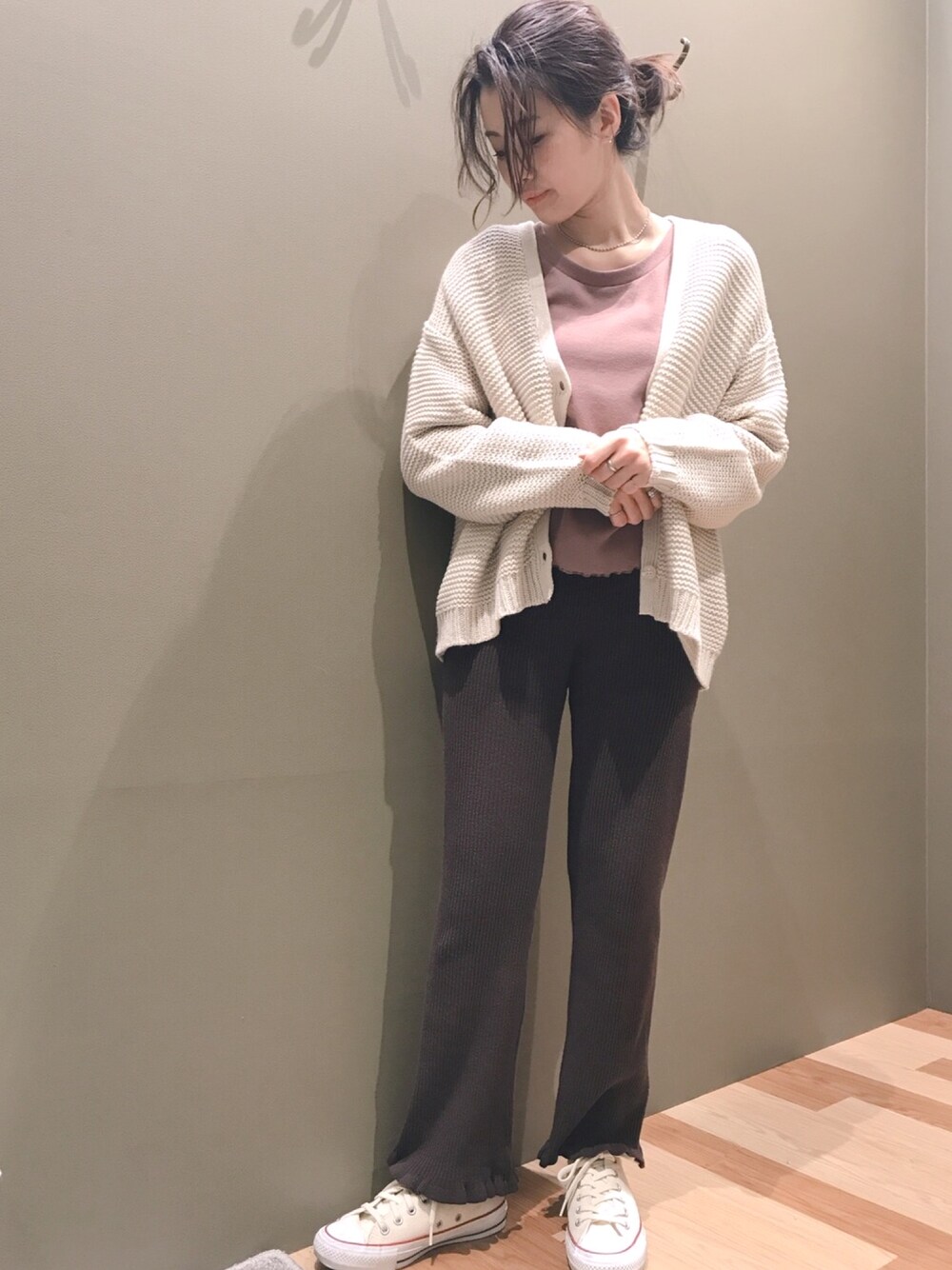 atsumiのカーディガン/ボレロ「・ガータ編みニットカーディガン*」を使ったコーディネート