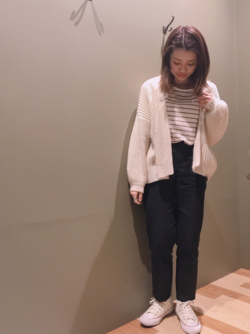 今日は買い足した プチプラのボーダーカットソーを 着てました😋 このざっくりカーデに めちゃくちゃ頼ってます!(笑) 寒がりの味方!