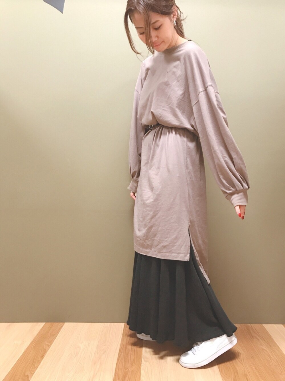 atsumi(Green Parks)のワンピース「オーガニックコットンすきな丈ふわ袖BIGT(ワンピ) ●*」を使ったコーディネート