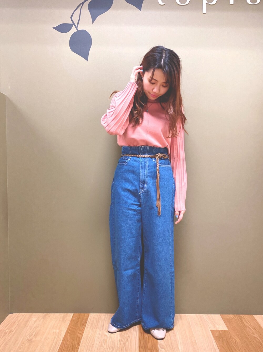 3月もよろしくお願いします🐰 ハイウエストと言われると気になって とりあえず履いてみます。❤︎ 脚長く見えたい!! デニム大好きだし合わせやすいし 付属のベルトもポイントになって可愛い😍 薄手の春ニットは季節の変わり目にぴったり❤︎