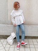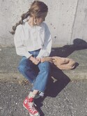 96506白×デニム👖でシンプルかわいい春コーデ🍀