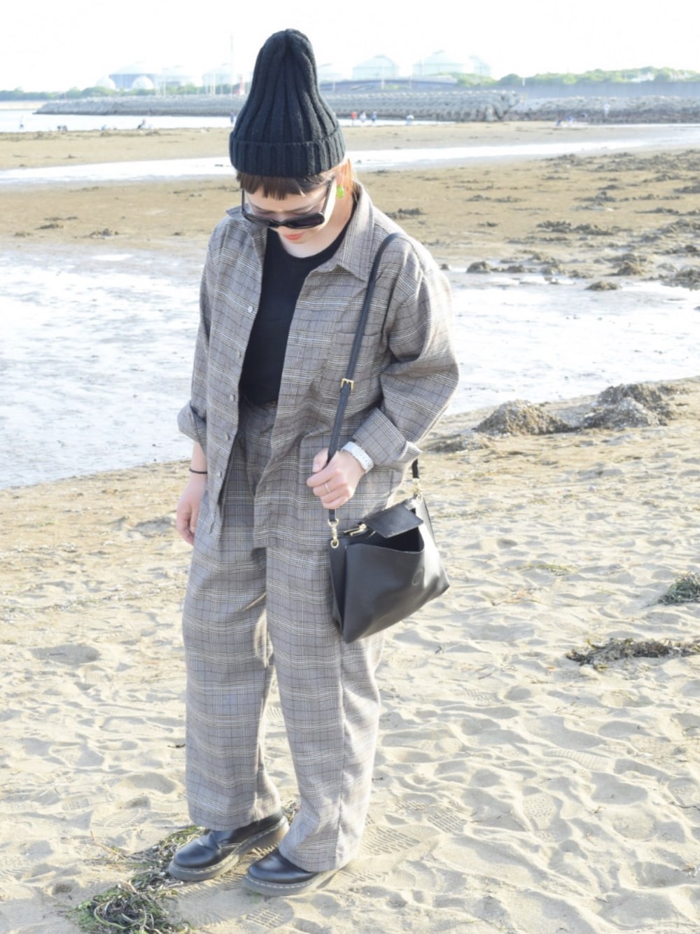 もう夏だ、、 チェックのセットアップ 激かわ。
