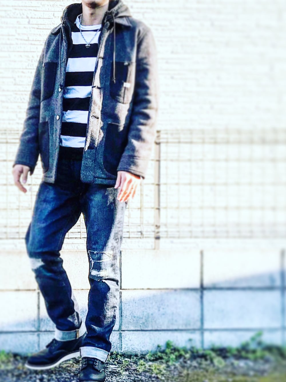 先日のコーデ☝️ ボーダーをアクセントに 写真だとわかりにくいけど、 レザーフードブルゾンを インナーにしてカバーオールを 羽織ってみやした✌️ そんな感じ😆 いつも いいね、お気に入りなど ありがとうございます🙌 コメントで仲良くしてくれる方も ありがとうございます😊