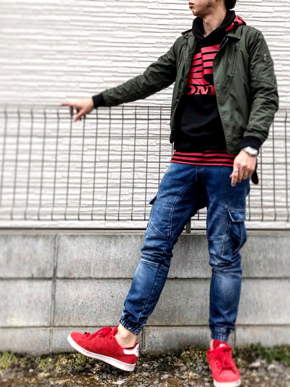 久しぶりになってしまった😅 ちょっとスポーティーなコーデ🏃♂️ 赤×黒×青にonカーキ 実は新たな家族を迎え入れる為に 色々と準備をしてました🙌 もう可愛すぎてすでに溺愛😻