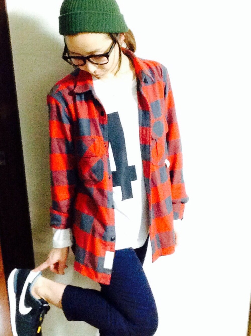 久々 だまーって、主人のシャツを拝借… こういうシャツ探してます。 そして‼︎スニーカー入手したー第二弾♥︎ nike♥︎サイズ大きいけど、中敷しけば大丈夫♥︎NBより好きかも♥︎