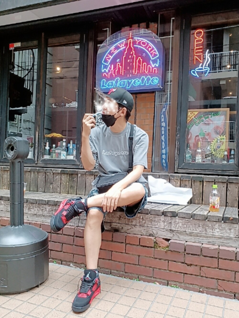 今週のお友達😘 涼しいと思いきや晴れてしまい 汗が自然とタラリ😓 久しぶりのデニムショーツと 少し厚手のグレーTシャツ オレンジAIR JORDAN4 BullsコラボのNEWERAで 王道streetコーデ😍 カッコいい🙌