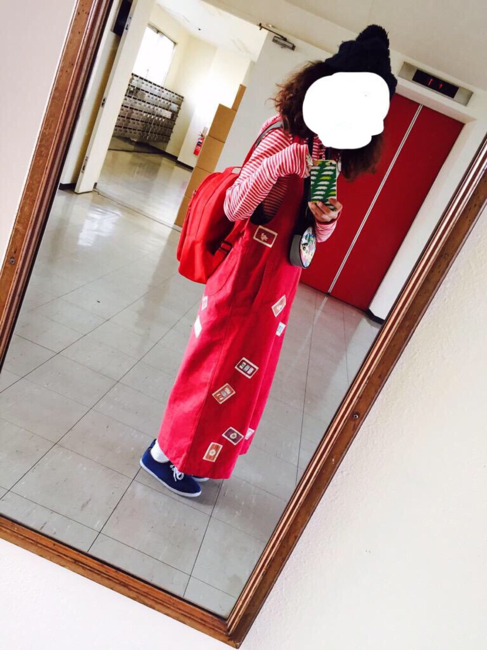 ブランドの統一感がなさすぎる。 赤にはまってるから全身赤