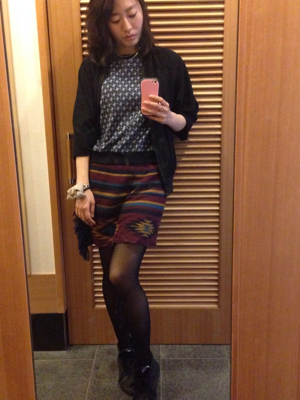 アウター:GU トレーナー:WHO'S WHO gallary スカート:Kastane スニーカー:VANS ネックレス:GALLERIE リング:GALLERIE,H&M