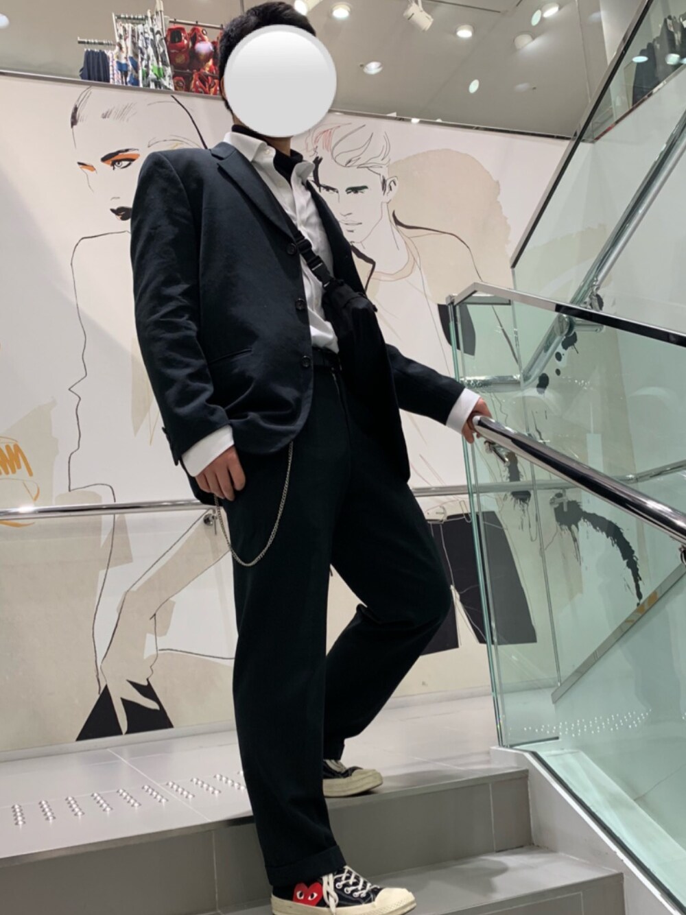 ギャルソンのセットアップ+プチプラでモードっぽい雰囲気にしてみました セットアップはインナーだけ考えれば良いので楽でオススメです フォロー&いいねよろしくお願いします