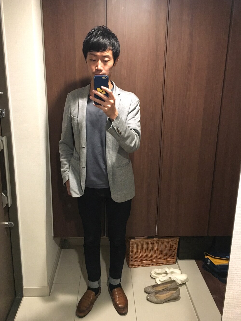 ユニクロ細身ジーンズで。