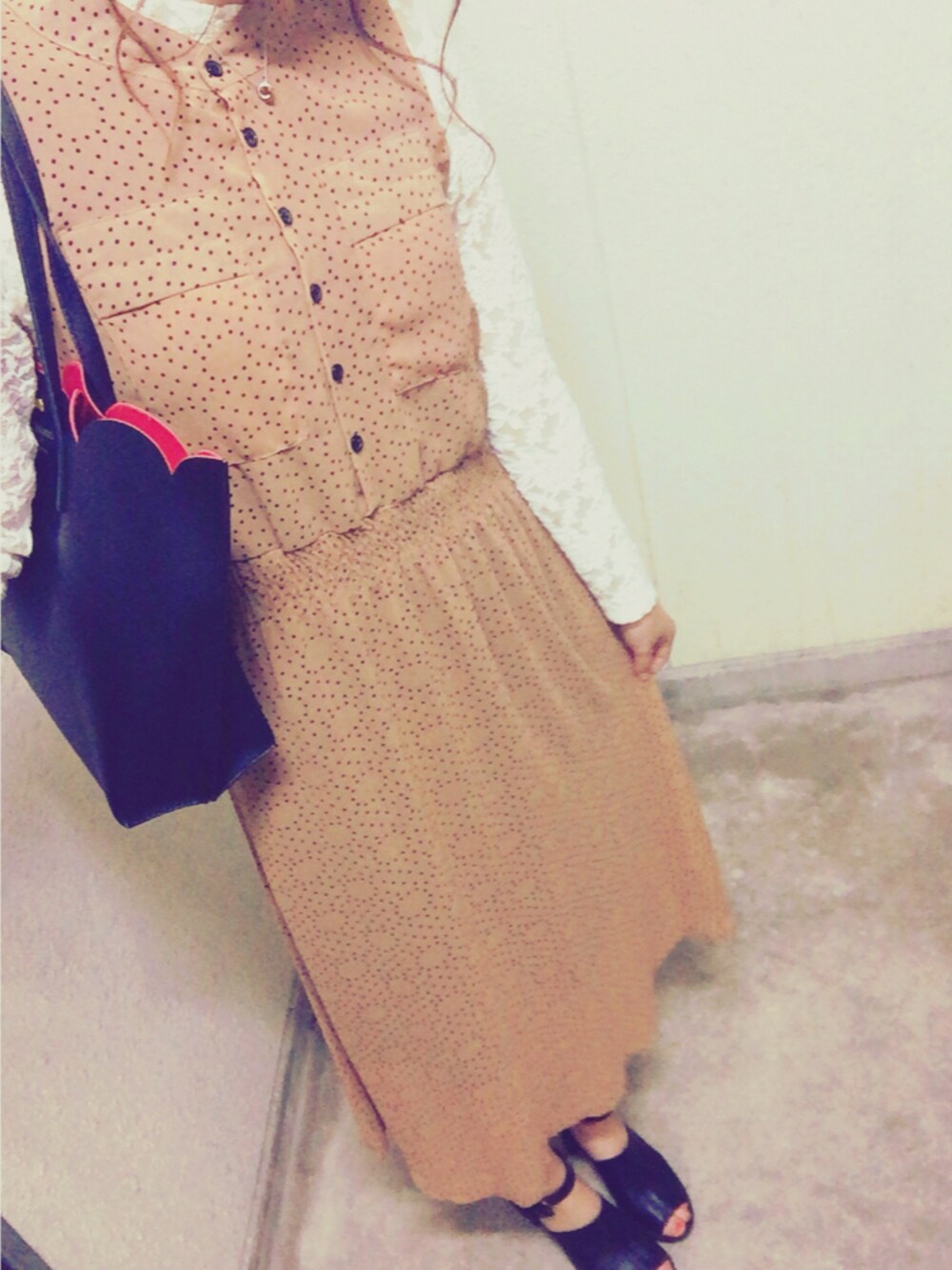 どこで買ったか忘れたワンピース 秋っぽい色だけどシースルーだし着たかったから着た👯 インナーもすけすけ〜 最近すけすけばっかり気になる👯 暑いからかな😂笑