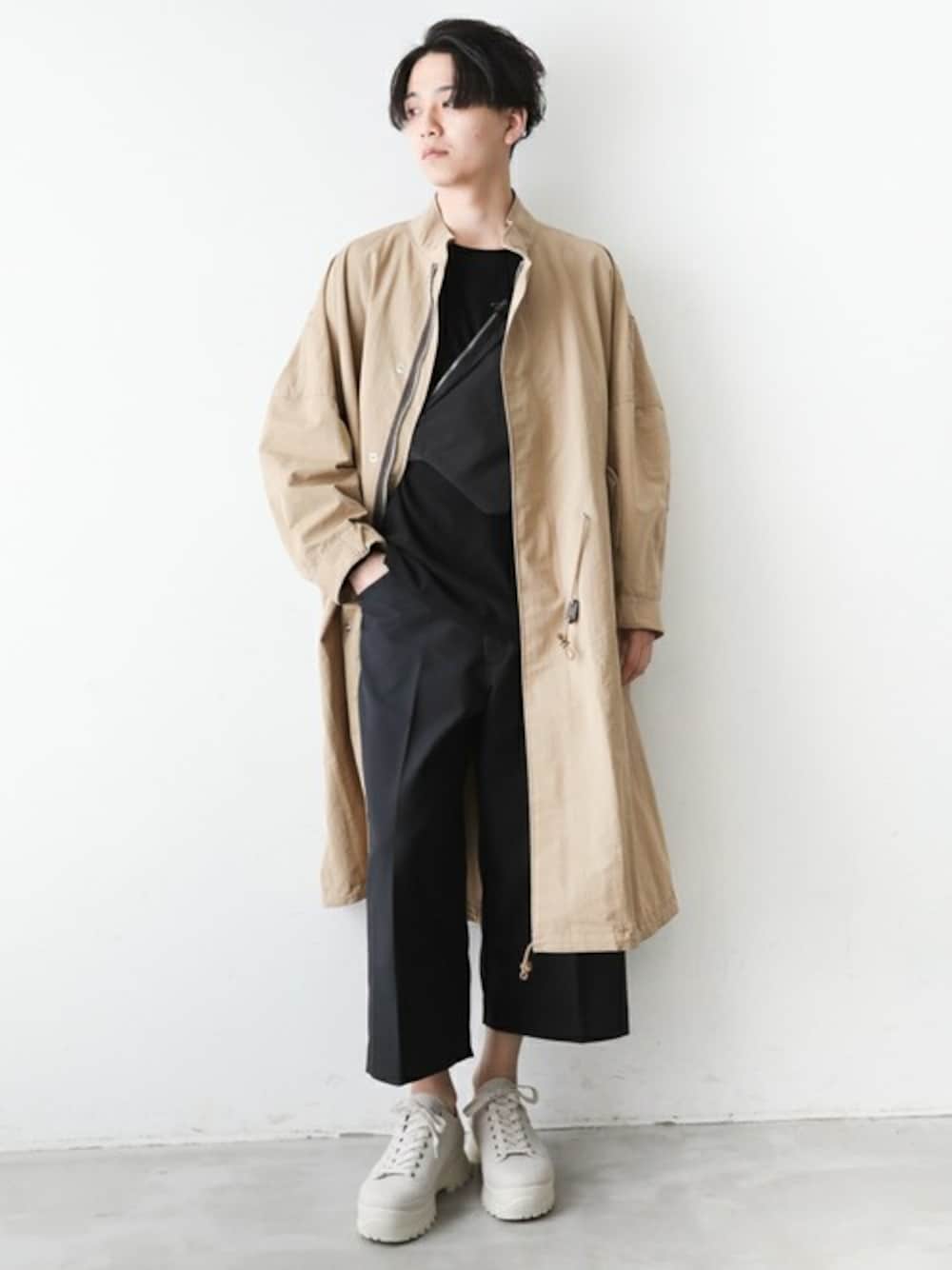 軽量のスプリング・モッズコートのスタイル。 トレンドのスタプレパンツに合わせて、旬なスタイルに。