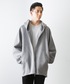 リラックス感のあるオーバーコートのスタイル。 グレーで揃えて統一感を出し、都会的できれめな印象に。