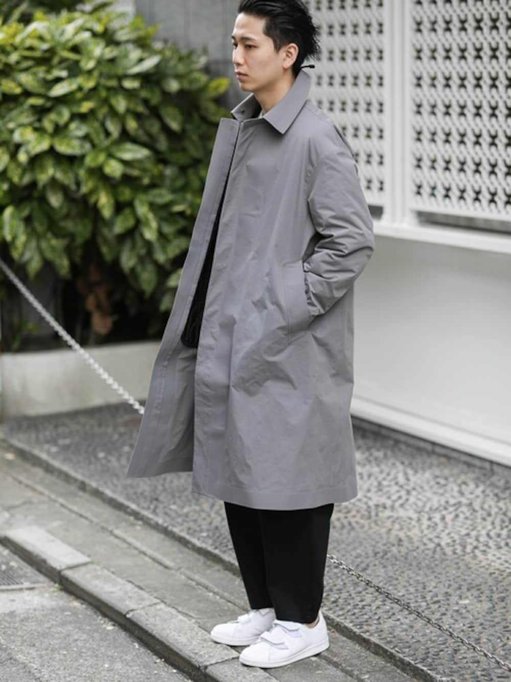 脱着可能なキルティングブルゾンを内蔵したステンカラーコートのスタイル。 ミニマルなデザインで、カジュアルからビジネスまで幅広く使えます。