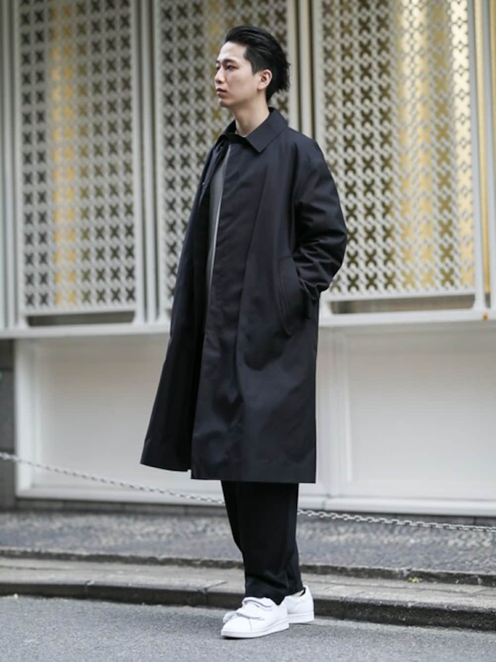 保温性・防風性の高いステンカラーコートのスタイル。 インには保温性の高い着脱可能なMA-1が内蔵されており、ON/OFF問わず使いまわせる便利なコート。 キレイ目なイージートラウザーズに合わせて、大人カジュアルスタイルに。