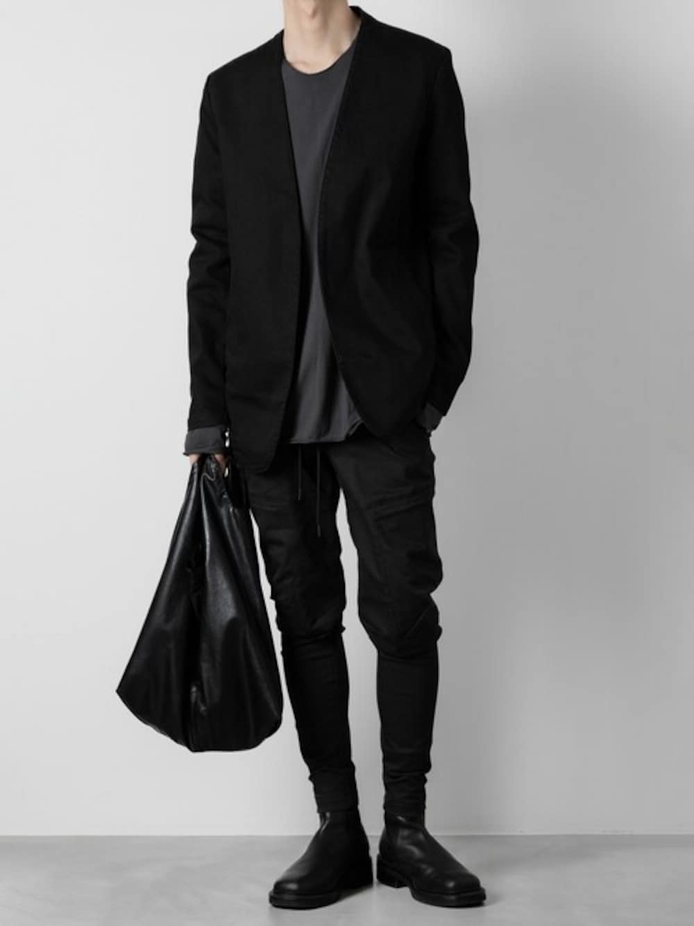 aoiのノーカラージャケット「スーピマコットン ストレッチデニム カラーレスジャケット / SUPIMA CO STRETCH DENIM COLLARLESS JACKET」を使ったコーディネート