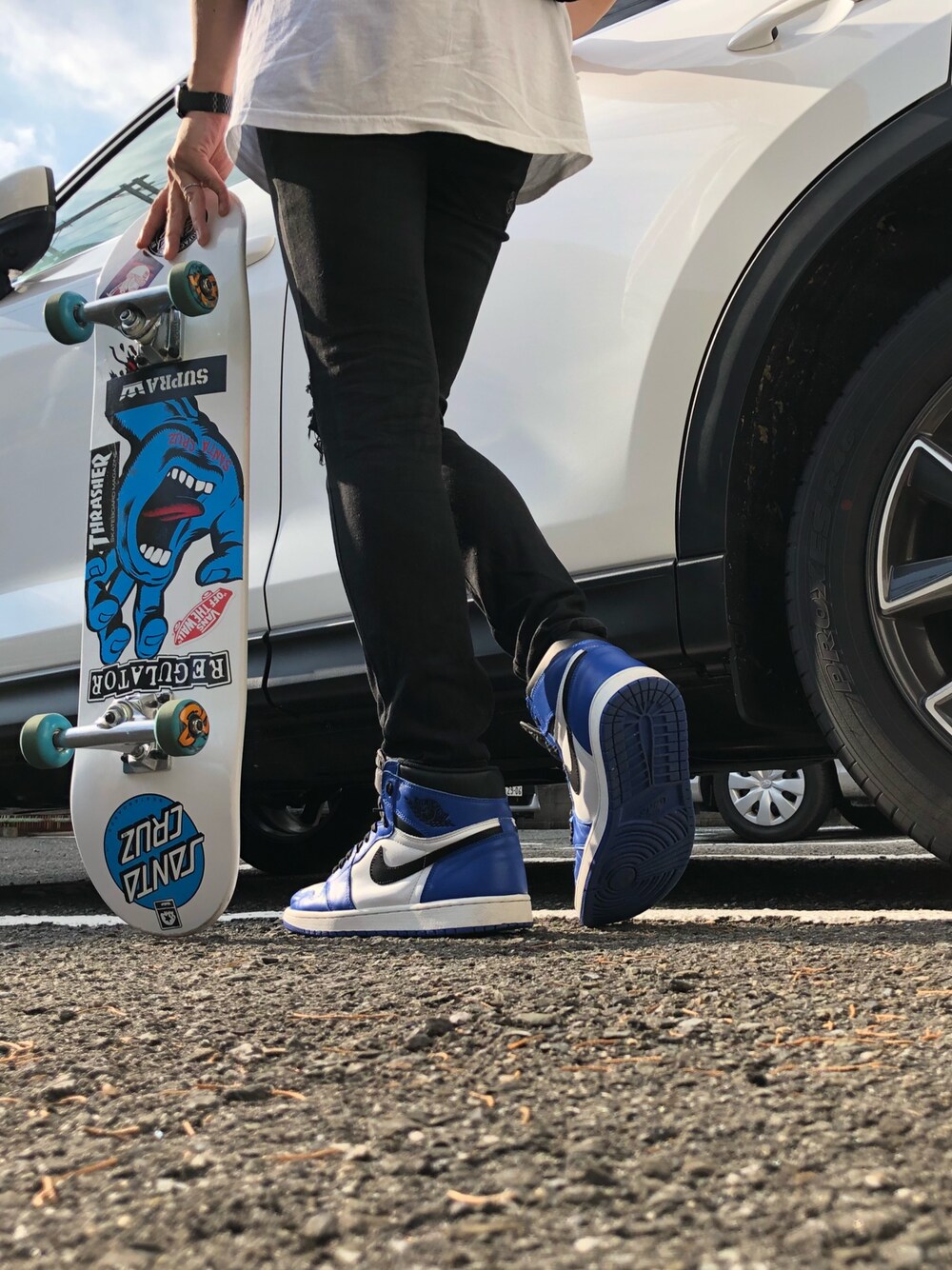 airjordan1 gameroyalやばい!!カッコ良すぎますね☆黒スキニーにNAMBA69のTシャツをオーバーサイズで着ました!!時計はNIXONとsantacruzにコラボです!スケボーはsantacruzです(^^)愛車のcx5を添えて!やっぱこのスタイルが好き🎵